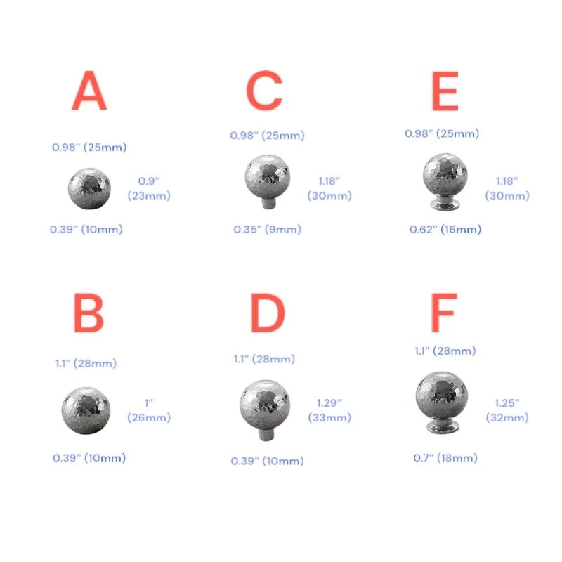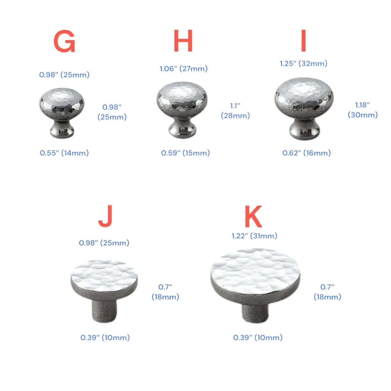 Hammered Brass Drawer Pulls, T Bar Cabinet Door Handles, Ball Knobs, Polished Chrome