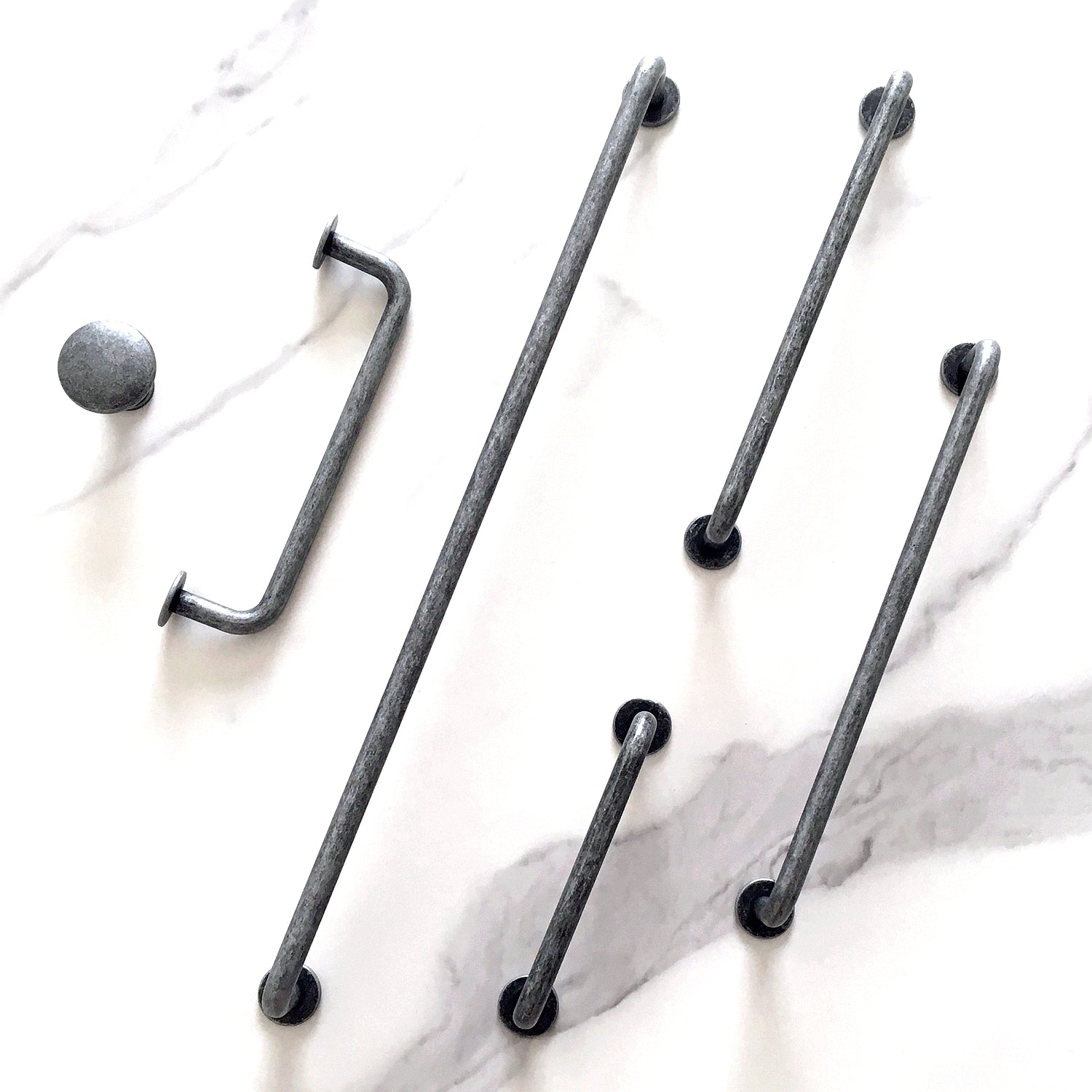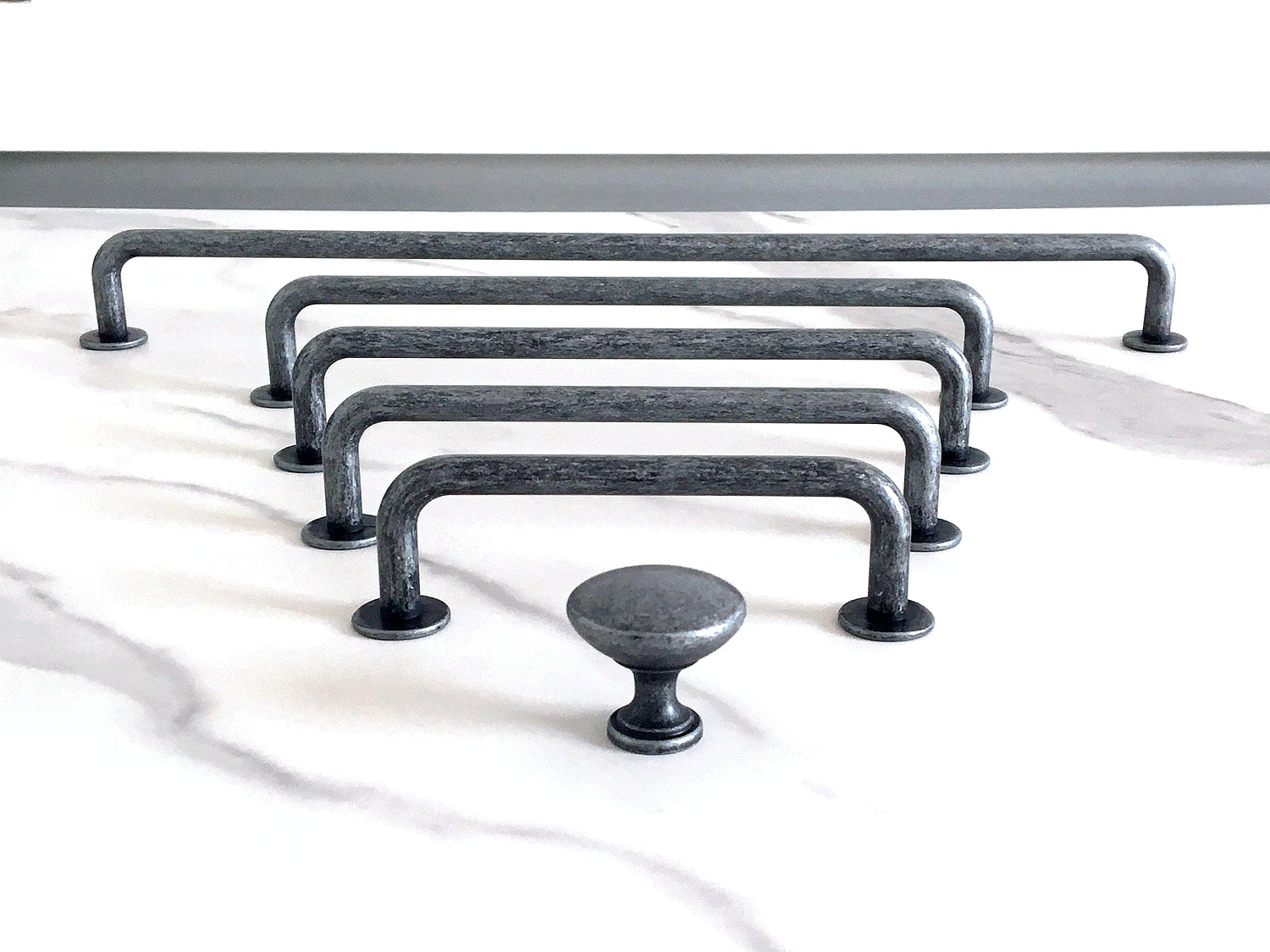 Pewter Cabinet Pull Handles, Wardrobe Door Pulls Slim Simple, Rustic Kitchen Hardware