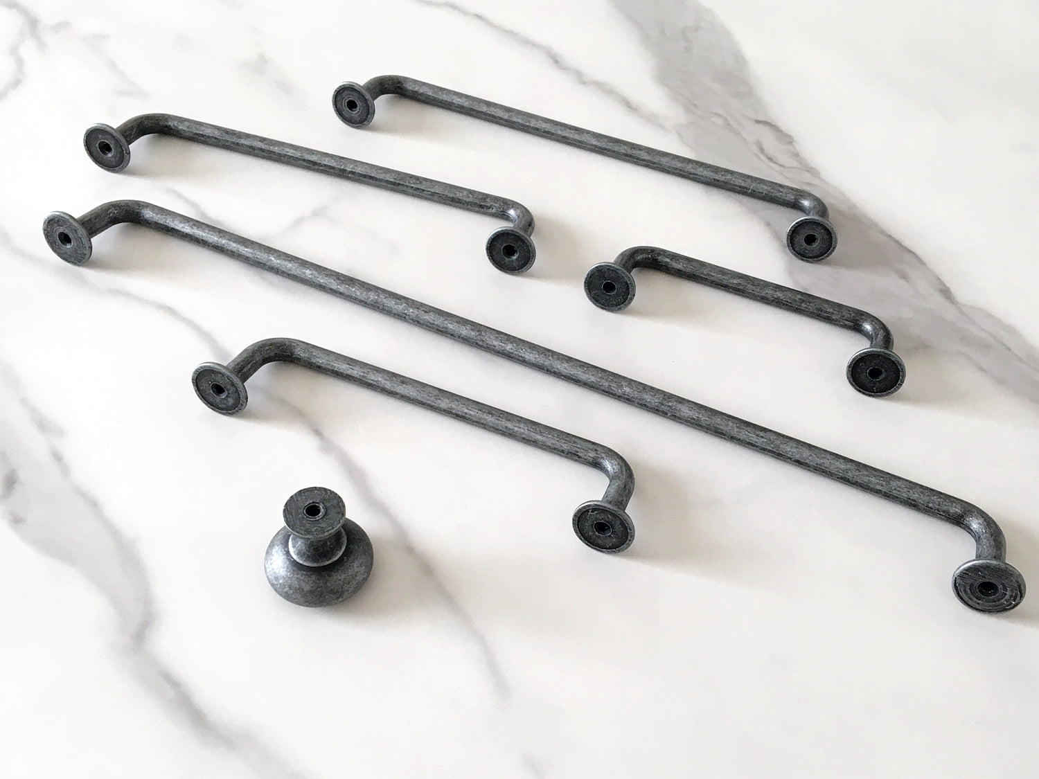 Antique pewter cabinet pulls combine understated elegance with functional design, perfect for modern and traditional kitchens alike. Their slim and simple profile ensures seamless integration with various cabinet styles.