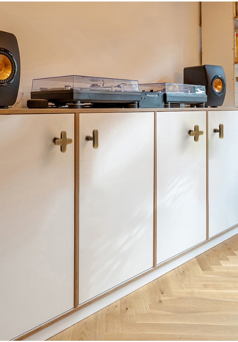 Plus Minus Symbol Cabinet Knobs, Solid Brass, Modern Kitchen Hardware