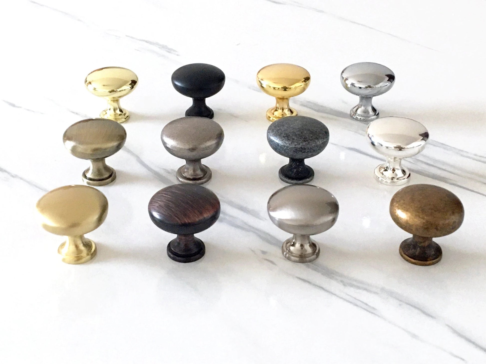 Round Cabinet Knobs, Drawer Pulls, Gold Pewter Nickel Bronze, Kitchen Hardware