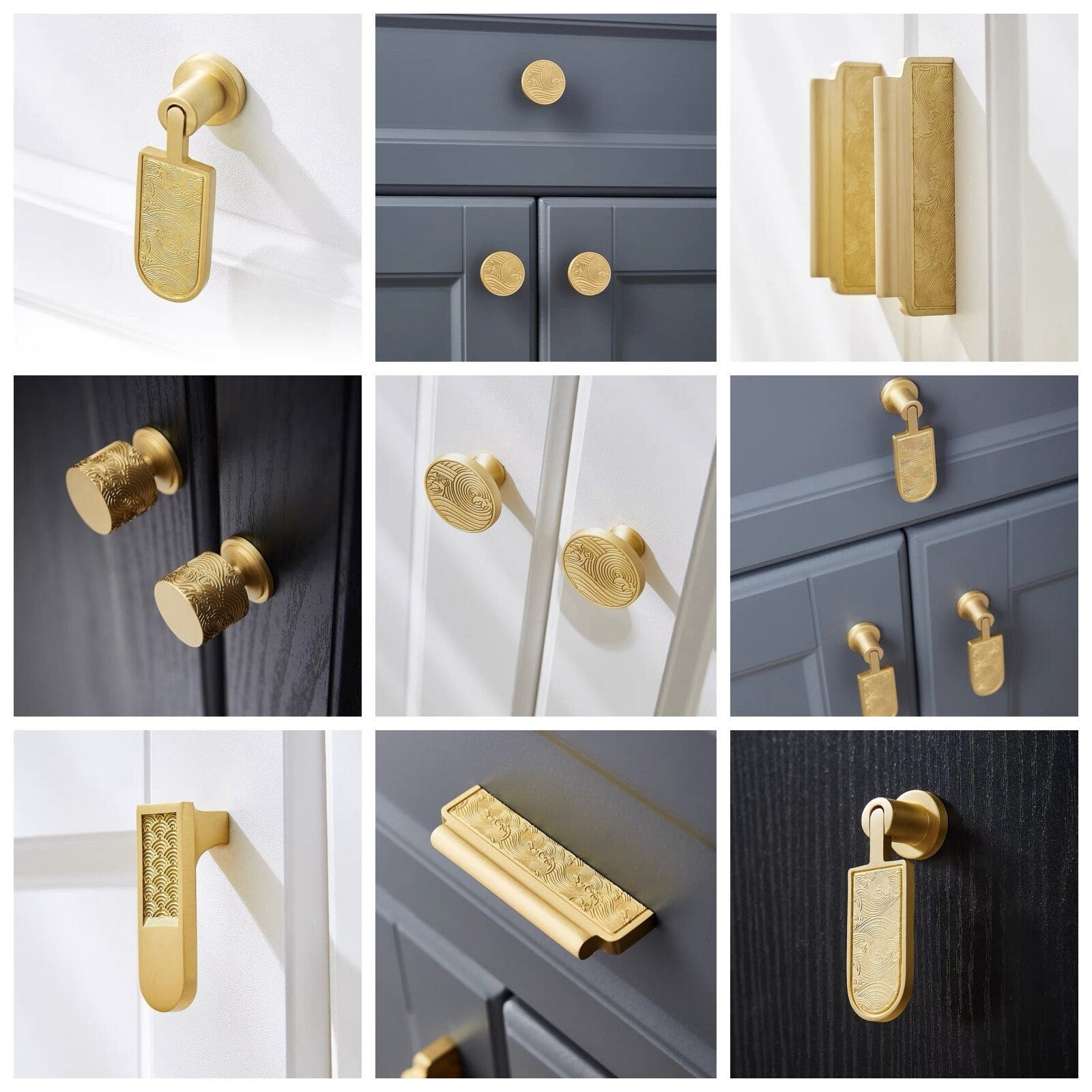 Solid Brass Cabinet Knobs, Classic Cylinder, Oriental Kitchen Hardware