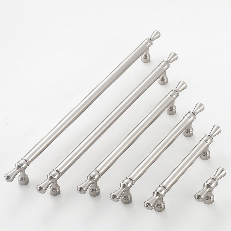 Solid Brass Euro Cabinet Bar Handle & T Knob - Brushed Nickel Steel