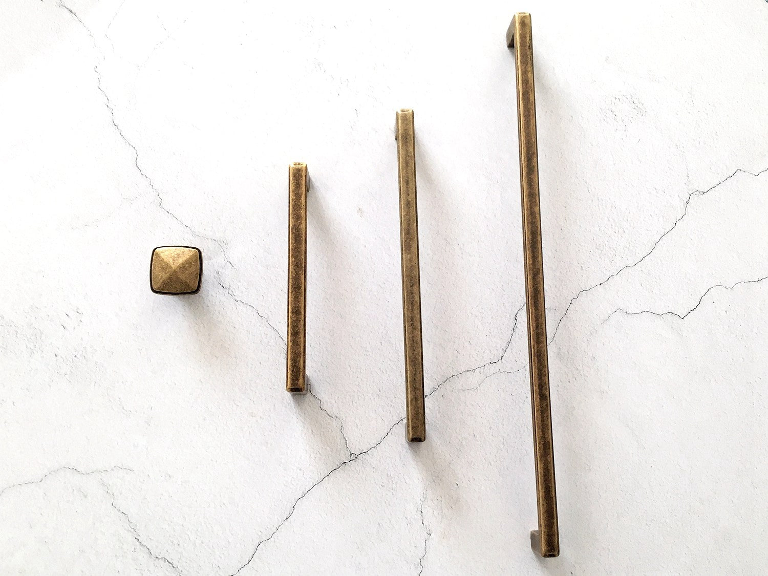 Antique Bronze Cabinet Square Bar Handle - Rustic Retro Hardware