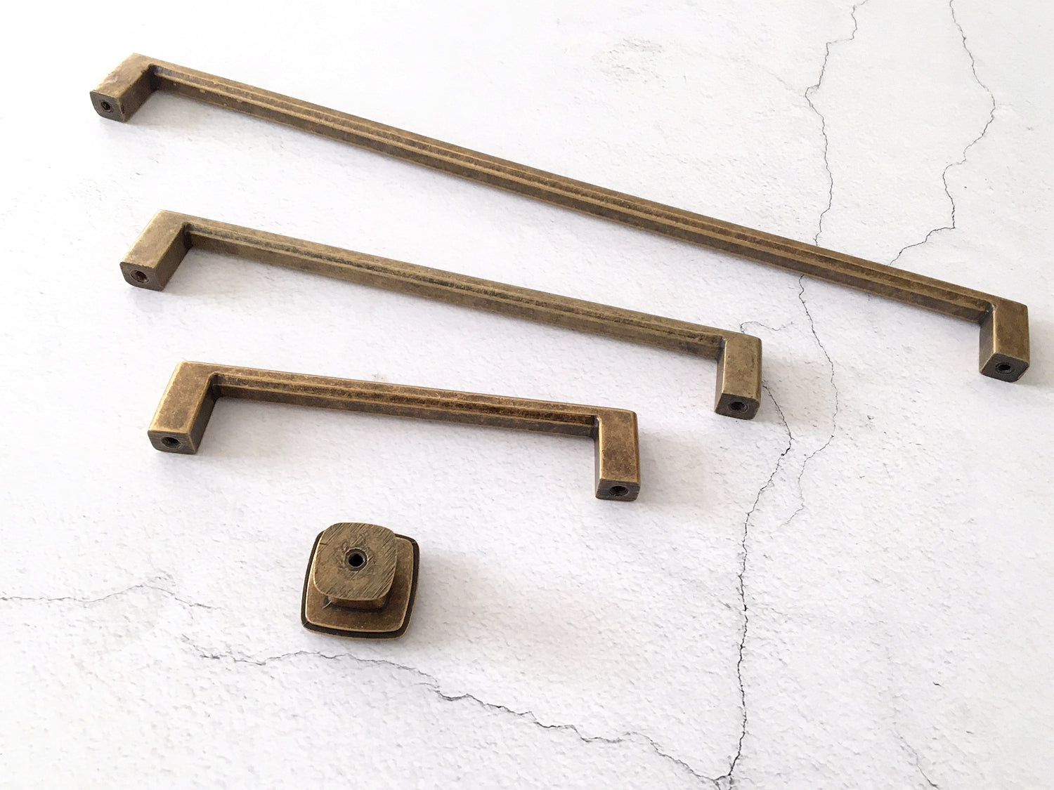 Discover the Cabinet Pulls and knobs from Lynns Hardware, combining simple, square designs with solid metal construction for lasting durability. Offered in three sizes—128 mm, 192 mm, and 320 mm centers—and antique bronze finish, these high-quality pulls and knobs add understated elegance to any cabinetry. Ideal for both small drawers and large doors, they provide a refined yet practical touch to your furniture.