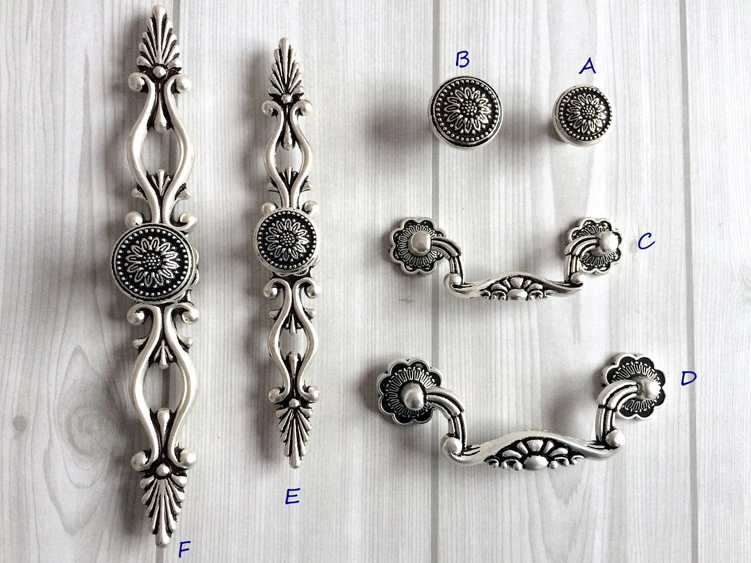 Sunflower Drawer Knobs and Pulls, Antique Silver Black, Retro Kitchen Hardware