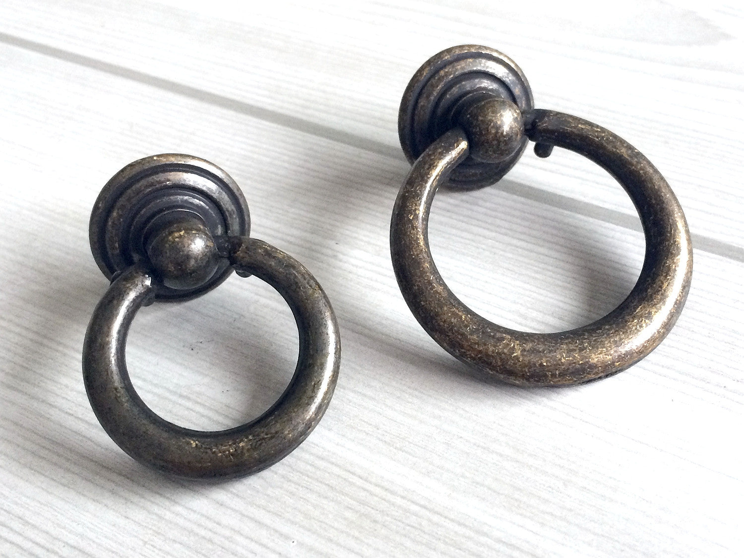 Enhance your cabinetry with these Dark Antique Bronze Drawer Ring Knobs featuring a backplate for added durability and style. Its rustic design and dark antique bronze finish provide a timeless, vintage appeal that complements traditional and farmhouse interiors.