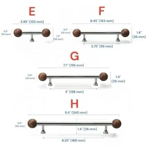 Walnut & Brass Chrome Cabinet Drawer Pull, Modern Japandi Kitchen Hardware